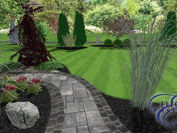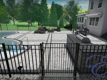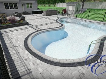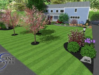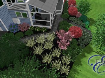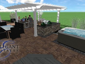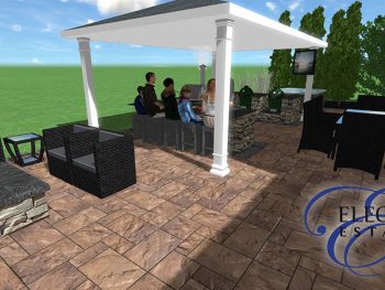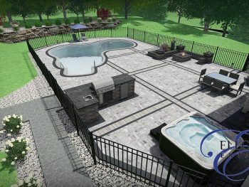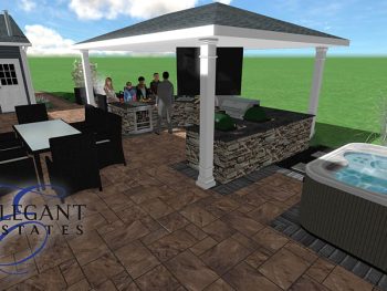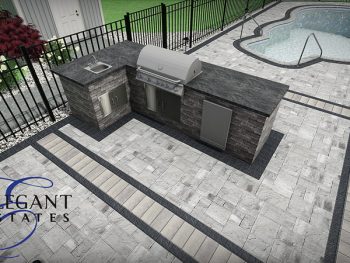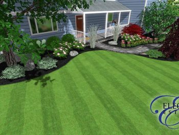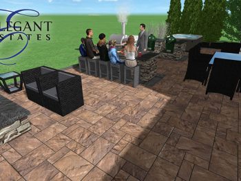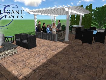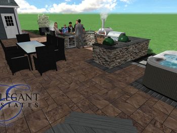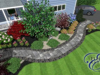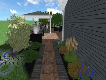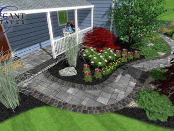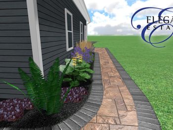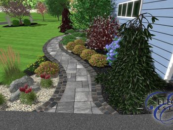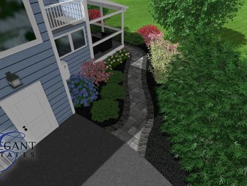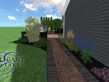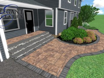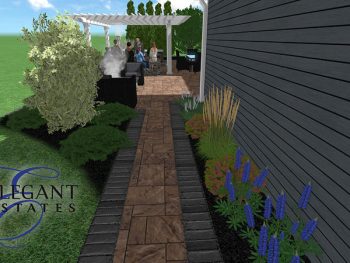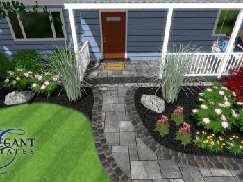 Please use the slide bar to see the existing site conditions on the right present at the time of design. The right side shows the design that was proposed for that area based on our design interview. We design and install a wide range of projects from small front walkways to large outdoor living areas, to interior tile and veneer stone.